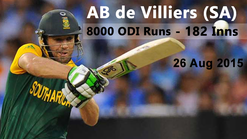 Already a record holder of many a milestones, including the fastest ton in ODI format, he broke one more record recently as he became the fastest batsman in the history of the game to cross 8000 runs in ODI cricket. This enigmatic South African all rounder, reached the milestone on his way to a 64 runs inning against the finalists of 2015 world cup; New Zealand. AB reached the milestone in only his 182nd Inning in the format.
