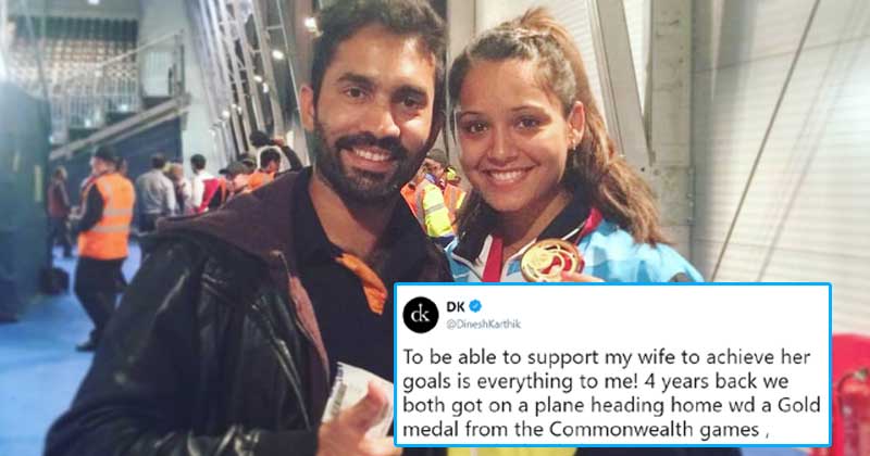 As Dinesh Karthik’s wife, Dipika Pallikal, leaves for a glorious stint in the Commonwealth Games 2018 currently happening at Gold Coast, Australia, he tweeted out an adorable message for her.